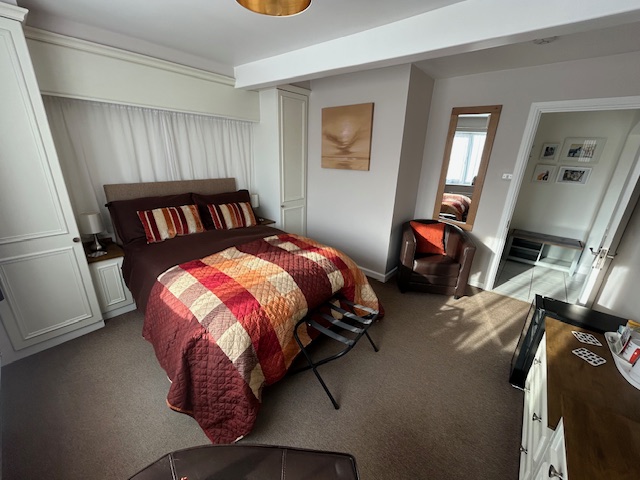 You will walk up a couple of steps from the secure, flat gravel parking area to your private entrance. This will bring you into your private accommodation ‘wing’, which comprises of a wide entrance hall, with dining table for breafast and maps of Warwickshire and Gloucestershire on the walls to plan your adventures. This then leads to a large double bedroom and spacious shower room. All on the same level.