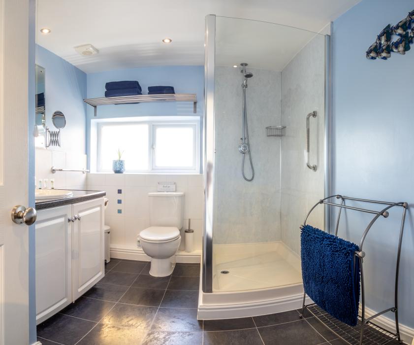 Private spacious shower room with large towels provided.